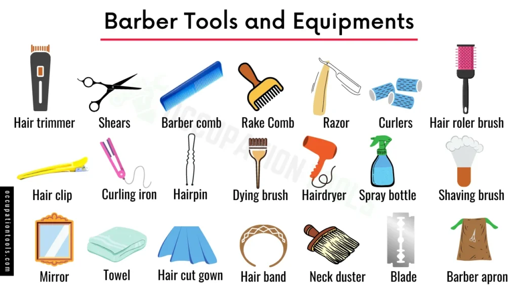 A barber’s tools and equipment are the essential parts of a barbershop. These tools are used for cutting hair, beards, body grooming, and other styling related to grooming men. A barber’s tools include items like scissors, clippers, combs, brushes, razors, etc.