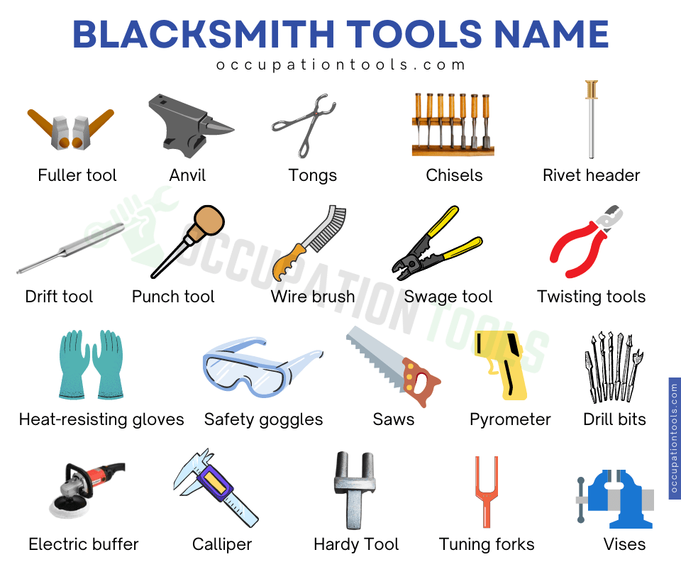 A to z list of forging tools and equipment names in English is essential for a beginner.